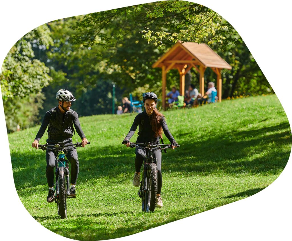 🌳🚲 Die drei Teilareale sind in einen weitläufigen Grünraum eingebettet und durch Fuß- und Radwege miteinander verbunden. Herzstück ist der öffentliche Blumenthal-Park mit vielen Nutzungsmöglichkeiten für die Bürger*innen, aber auch separaten Bereichen mit Lebensräumen für geschützte Arten. 🤸