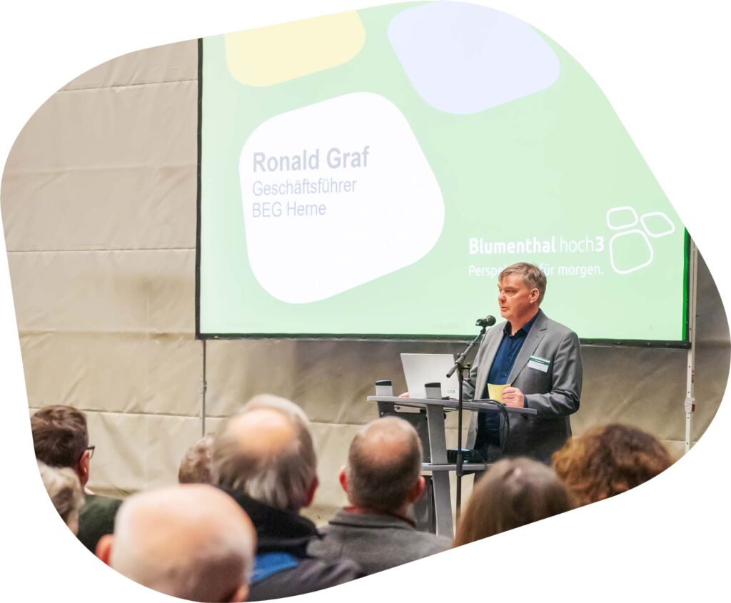 Die Flächenentwicklung auf dem ehemaligen Zechengelände ist eine ebenso lohnende wie große Aufgabe, die sich über mehrere Jahre erstrecken wird. Deshalb wurde für die Realisierung dieses bedeutenden Zukunftsprojekts die Blumenthal-Entwicklungsgesellschaft Herne (BEG) gegründet. Als hundertprozentige Tochtergesellschaft der Stadtentwicklungsgesellschaft Herne (SEG) ist sie für die Planung der zukünftigen Flächennutzung, den Flächenerwerb, die Bodenaufbereitung, die Erschließung sowie die Vermarktung der baureifen Grundstücke zuständig.